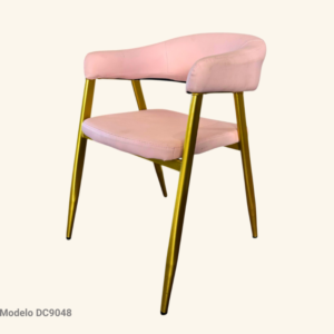 Sillas color rosa de plástico con cojín de terciopelo, patas de metal